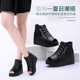 松糕凉鞋女夏2017新款性感厚底内增高跟鱼嘴网眼洞洞镂空拉链小码
