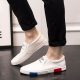 2016秋季男鞋休闲假系带一脚蹬懒人鞋帆布鞋男白色鞋套脚驾车鞋子