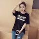 2017夏季新款韩版黑色打底衫上衣短袖字母中长款纯棉t恤衫女春装