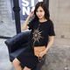 夏季韩版新款大码女装印花字母体恤衫纯棉宽松中长款短袖t恤裙女