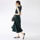 MONA新款复古名媛风显瘦性感气质挂脖收腰露背光感连衣裙中长款女