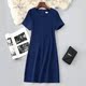 2017夏装新款韩版圆领短袖纯色休闲时尚直筒连衣裙A字裙中长裙女