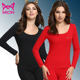 猫人保暖内衣女士大圆领纯棉薄款美体修身打底秋衣秋衣新款套装