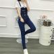 春季新款2017牛仔背带裤女修身吊带裤长裤排扣韩版高腰弹力小脚裤