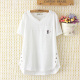 夏装新款T恤大码女装中长款长袖V领T恤宽松显瘦上衣胖妹妹打底衫