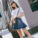 高端定制2017春夏新款毛须边韩版伞裙百搭文艺清新牛仔裙半身裙