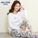 梦里情柔2016秋冬女长袖纯棉睡衣植物花卉全棉可外穿家居服套装