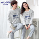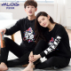 梦里情柔2016情侣纯棉睡衣长袖圆领字母韩版男女家居服可外穿套装