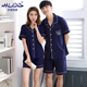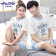 2套价 夏季情侣短袖睡衣纯棉男女蓝色时尚休闲全棉家居服外穿套装