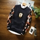 小智男装 2017春季新品印花圆领男长韩版潮男修身百搭款卫衣外套A