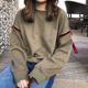 复古韩国chic风简约百搭丝绒拼接款卫衣宽松显瘦纯色套头毛衣女潮