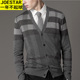 秋季男V领针织开衫条纹潮宽松空调衫英伦外套毛衣胖子加大码男装