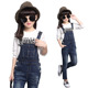 女童牛仔裤2017春秋新款韩版时尚百搭背带裤中大童女孩休闲裤子潮