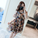 大码夏装女胖mm2017新款雪纺连衣裙短袖显瘦时尚拼接印花潮