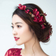 韩式新娘头饰红色仿真绢纱花朵发夹手工结婚敬酒服配饰品礼服发饰