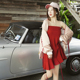 泡沫之夏2017春季新款百搭一字领抹胸裙百褶裹胸连衣裙AD63214