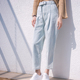 越轨品质 2017春夏浅色复古高腰宽松哈伦牛仔裤女170227