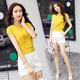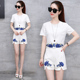 2017夏季韩版时尚女装时尚短袖雪纺衫短袖短裤套装夏装休闲两件套