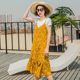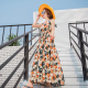 夏季大码女装碎花无袖吊带雪纺连衣裙波西米亚长裙海边度假沙滩裙
