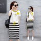 2017夏季新款套装裙连衣裙女装时尚短袖T恤条纹显瘦包裙两件套潮