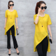 夏装短袖t恤女韩版前开叉不规则体恤衫女装半袖小衫镂空露背上衣