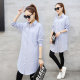 衬衫女宽松2017春装新款条纹大码休闲韩版中长款长袖衬衣百搭学生