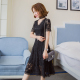 套装连衣裙洋气欧洲站2017夏装修身显瘦网纱拼接半袖雪纺气质长裙