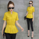 短袖小V领修身衬衫夏女小裙摆娃娃款开衫衬衣工作职业女装上衣潮