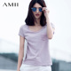 amii极简主义2017新款女装修身t恤衫女打底纯色百搭大码短袖T恤女