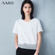AMII旗舰店2016夏装新款女装休闲V领拼雪纺H型短袖大码修身T恤女