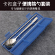 韩式kitshine304不锈钢实心扁筷子勺子套装激光印花便携餐具套装