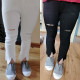 女童打底裤春秋儿童小童宝宝黑色白色破洞毛边外出长裤子韩版潮