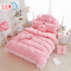 红贝蕾全棉公主风床裙四件套简约纯色蕾丝边被套婚庆家纺纯棉床品