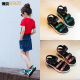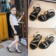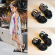 2017夏款女童鞋女童凉鞋 露趾水晶休闲鞋中大童韩版黑色学生凉鞋