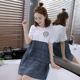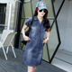 2016针织拼接牛仔裙短袖宽松连身短裙时尚新款沙滩甜美可爱连衣裙
