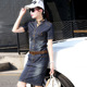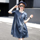 宽松水洗牛仔连身裙方领连衣裙子夏韩版气质衣服女学生套头中裙