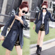 秋天外套女上衣PU皮拼接做旧牛仔外套长袖中长款斗篷型女士外衣潮