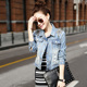 春秋款镶钻潮女装小款夹克外搭个性修身破洞牛仔短外套女式牛仔衣