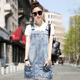 欧洲站春秋装女装长袖T+破洞背带裤亲子牛仔裤套装女式运动套装潮