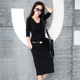 知性优雅气质女装春夏牛仔一步裙v领収腰包臀连衣裙长袖修身秋裙