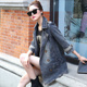 春秋下摆不规则牛仔外套7分袖长袖大摆风衣女中长款宽松外搭斗篷