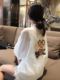 vcruan2017春装长袖衬衫侧开叉白袖子可以翻起来浅蓝衬衫长款衬衣