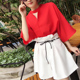 MG小象时尚套装女夏2017新款宽松五分喇叭袖雪纺衫吊带短裤三件套