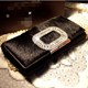 日韩镶钻方扣牛皮钱包女长款真皮马毛搭扣钱夹多卡位短款手拿包潮
