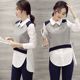 2017春装新款衬衫女娃娃领拼接上衣修身显瘦衬衣假两件韩版女衬衣