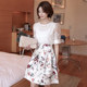 时尚套装连衣裙2017春夏新款韩版欧根纱雪纺上衣中腰短裙两件套女