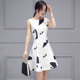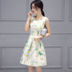 连衣裙女2017新款春装韩版无袖一字领印花连衣裙秋高腰a字公主裙