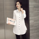 衬衫女2017春装新款中长款刺绣印花白色休闲长袖拼接韩版女士衬衣