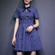 欧美2017春夏新款 短袖松紧腰格子a字裙棉质修身气质显瘦连衣裙女