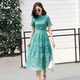 2017夏季新款女装镂空中长款修身大摆长裙子水溶花短袖蕾丝连衣裙